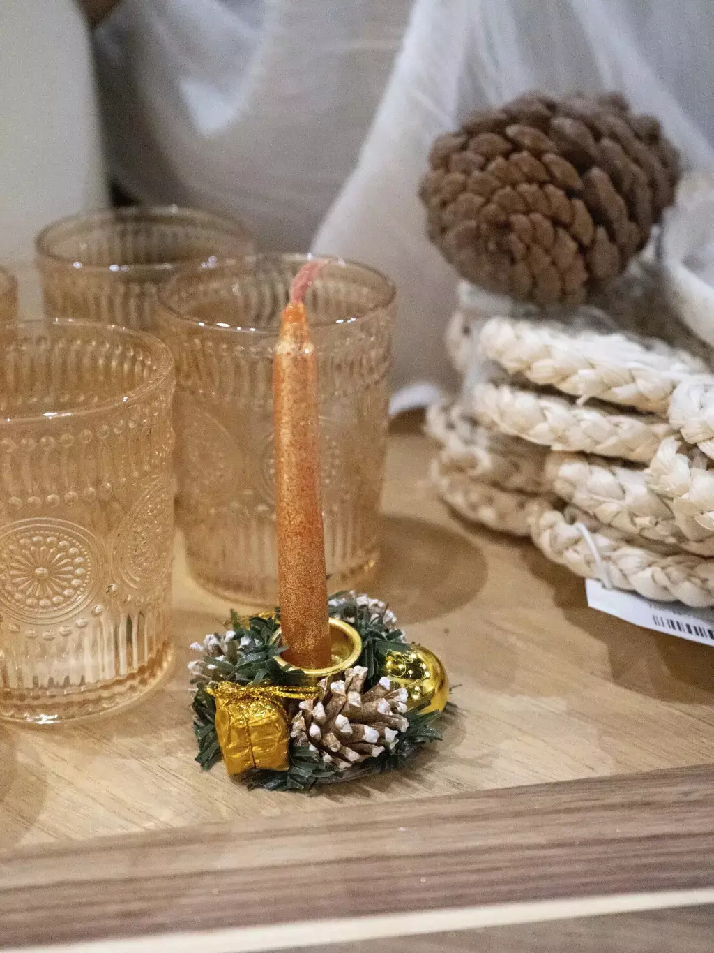 Velas doradas navideñas, ideales para decorar tu hogar o tu mesa en estas festividades. Medidas aproximadas: 12cm Las imágenes son a modo de ilustración.